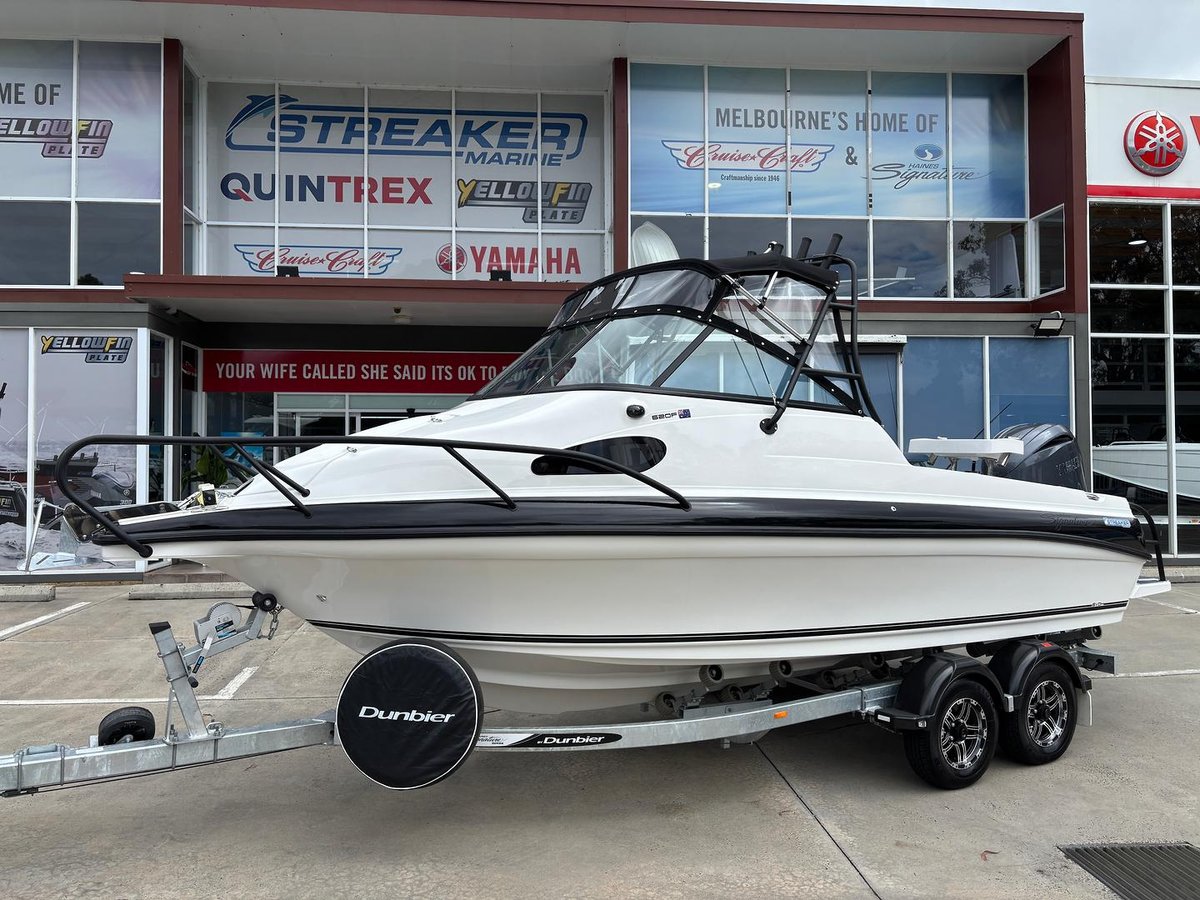 HAINES SIGNATURE 620F WITH YAMAHA F175XCB EFI 4 STROKE ENGINE ON DUNBIER TANDEM TRAILER